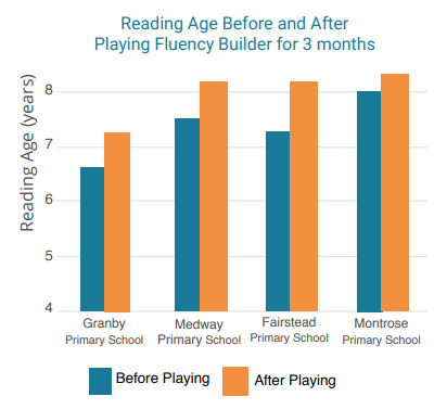 They played Fluency Builder for 10 minutes a day, for 3 months, and on average their reading age increased by 7.5 months.